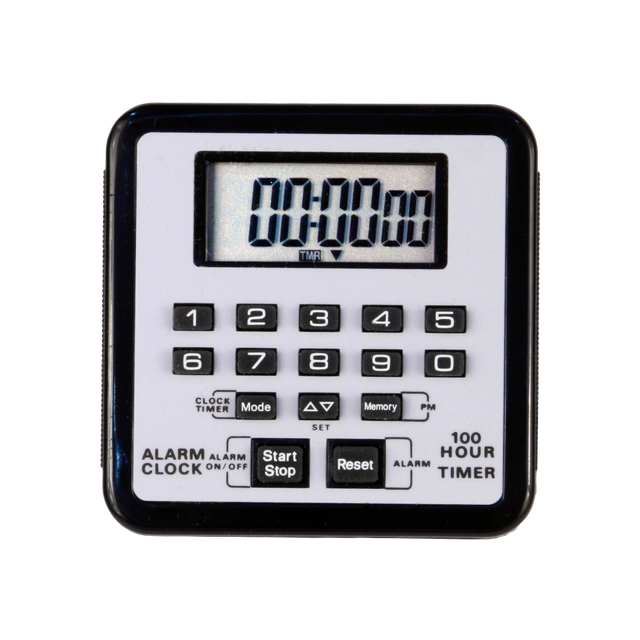 Loud countdown alarm turns off manually or automatically after one minute. LCD digits are readable from 2.4m (8’) away. Battery included.