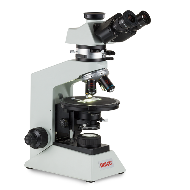 The G508T Polarizing Trinocular Microscope is a highly specialized instrument designed for advanced analysis and documentation of anisotropic materials using polarized light. This microscope is ideal for applications in geology, mineralogy, materials science, and more. It features a Siedentopf trinocular head, allowing for comfortable binocular viewing and simultaneous connection to a camera for photomicrography and digital documentation. The microscope includes WF10X wide-field eyepieces (one with a reticle) for precise measurements. A 4-position nosepiece holds strain-free Plan objectives (4X, 10X, 20X, and 40X) that minimize internal stress, crucial for accurate polarization results. The integrated midst head houses a Bertrand lens for conoscopic observation of interference figures, along with a full wavelength plate, quarter wavelength plate, and quartz wedge for advanced polarization analysis. A 160mm diameter revolving stage with 10 scales, 6’ precision, and a 0.01mm micrometer allows for precise specimen rotation and measurement. Both the polarizer and analyzer are 360° rotatable with 20 scales and 6’ precision, providing complete control over light polarization. Kohler LED illumination with adjustable intensity ensures optimal lighting for various samples. The microscope's universal power input (90V-240V) provides compatibility worldwide. This powerful tool is perfect for researchers, educators, and professionals requiring precise polarized light microscopy and image capture.